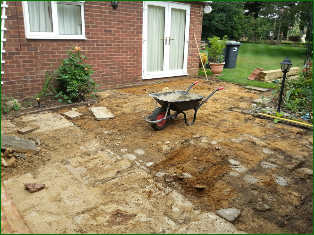 A raised patio in Isham, Before.